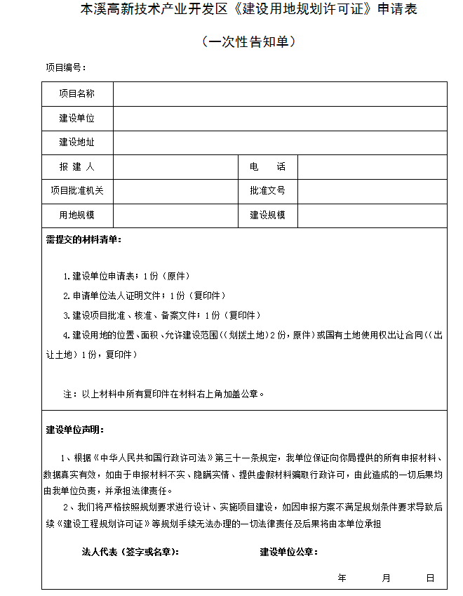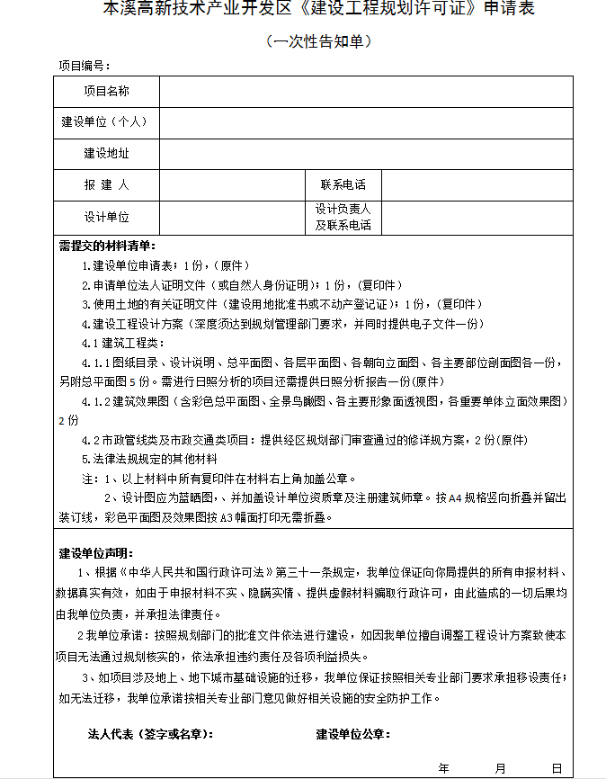 本溪高新技術產業開發區房屋建筑工程竣工驗收備案申請告知單及建筑工程施工許可證申請告知單