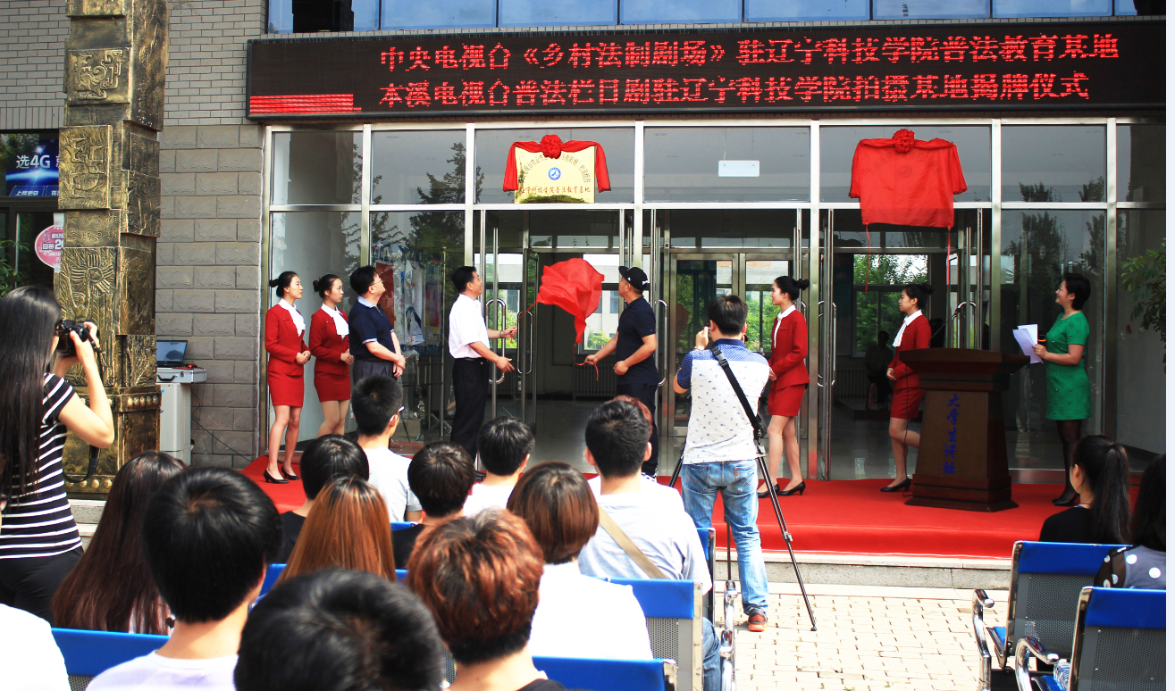 6月13日上午,中央電視臺《鄉村法制劇場》駐遼寧科技學院普法教育基地及本溪電視臺《普法欄目劇》遼科院拍攝基地在遼寧科技學院藝術樓門前舉行了揭牌儀式。