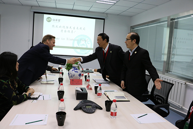 仙草堂負責人向Stephen L.Green一行介紹了公司概況及該公司資本重組以來所取得的成績及未來企業規劃。隨后,雙方就中藥產品走出國門、如何順暢通過FDA認證及歐盟認證等事宜進行交流。