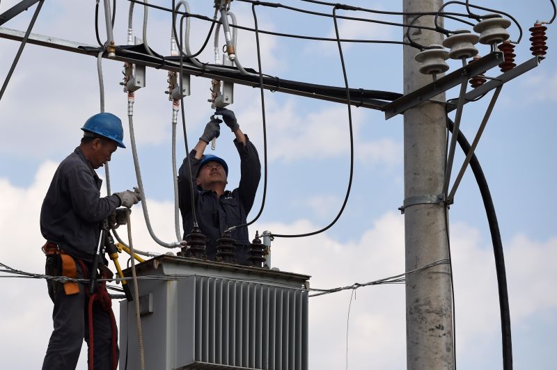 在御龍山溫泉度假村項目一角,電力工人正在安裝新變壓器。
