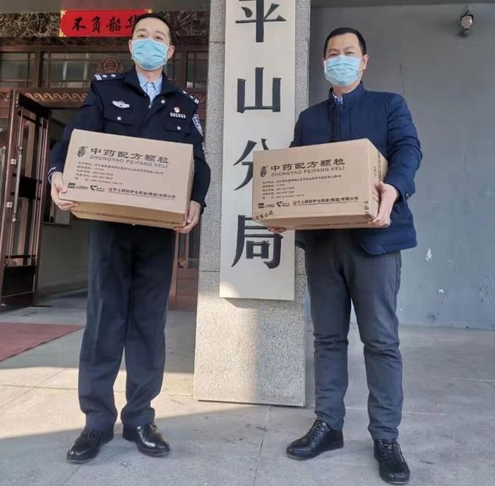 由于連日來(lái)的疫情排查,平山公安分局防護(hù)用品有些不足,藥都企業(yè)遼寧好護(hù)士集團(tuán)醫(yī)藥有限公司得知這一情況后,1月30日,在高新區(qū)的對(duì)接下,公司配方顆粒事業(yè)部市場(chǎng)總監(jiān)張文濤向奮戰(zhàn)在疫情防控一線的平山公安民警進(jìn)行慰問(wèn),并贈(zèng)送200份中藥預(yù)防用藥。