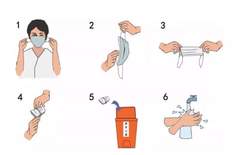 摘口罩的時候,盡量不要觸摸口罩的外側,摘下口罩后記得立即洗手。
