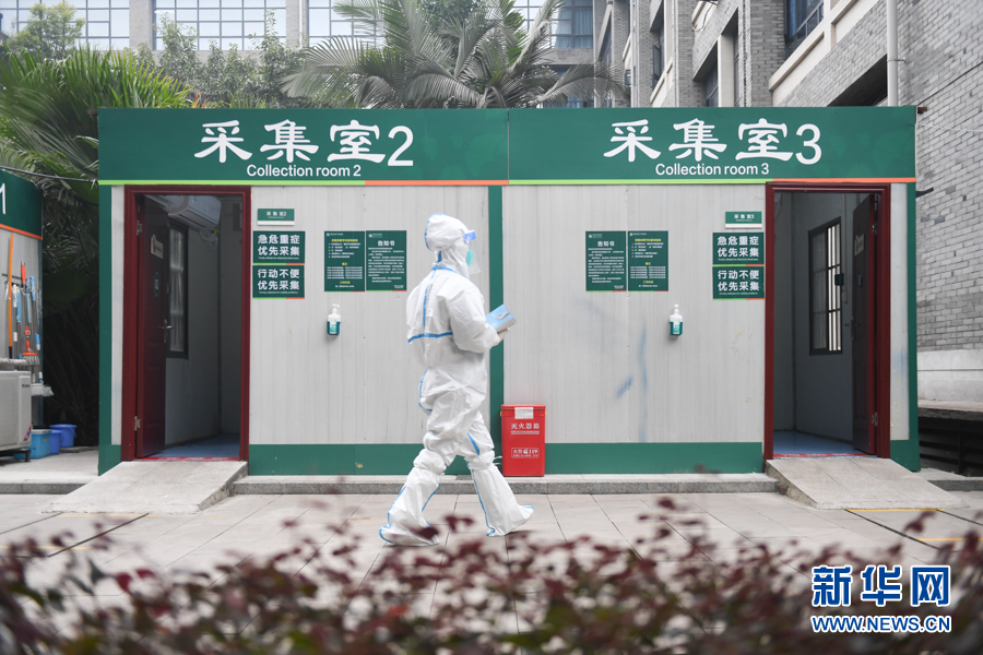 為滿足市民的核酸檢測需求,目前,蒲文嬌所在的核酸檢測點共設置了四個核酸檢測采集室,工作時間為早上八點至晚上八點。新華網 耿駿宇 攝