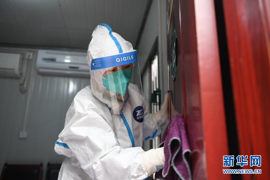一班結束之后,蒲文嬌再次對核酸采集室進行清潔消毒。“每天要進行多次消毒,確保采樣環境安全。”蒲文嬌說,同時,采集室也運用紫外線空氣消毒機全天進行消毒。新華網 耿駿宇 攝